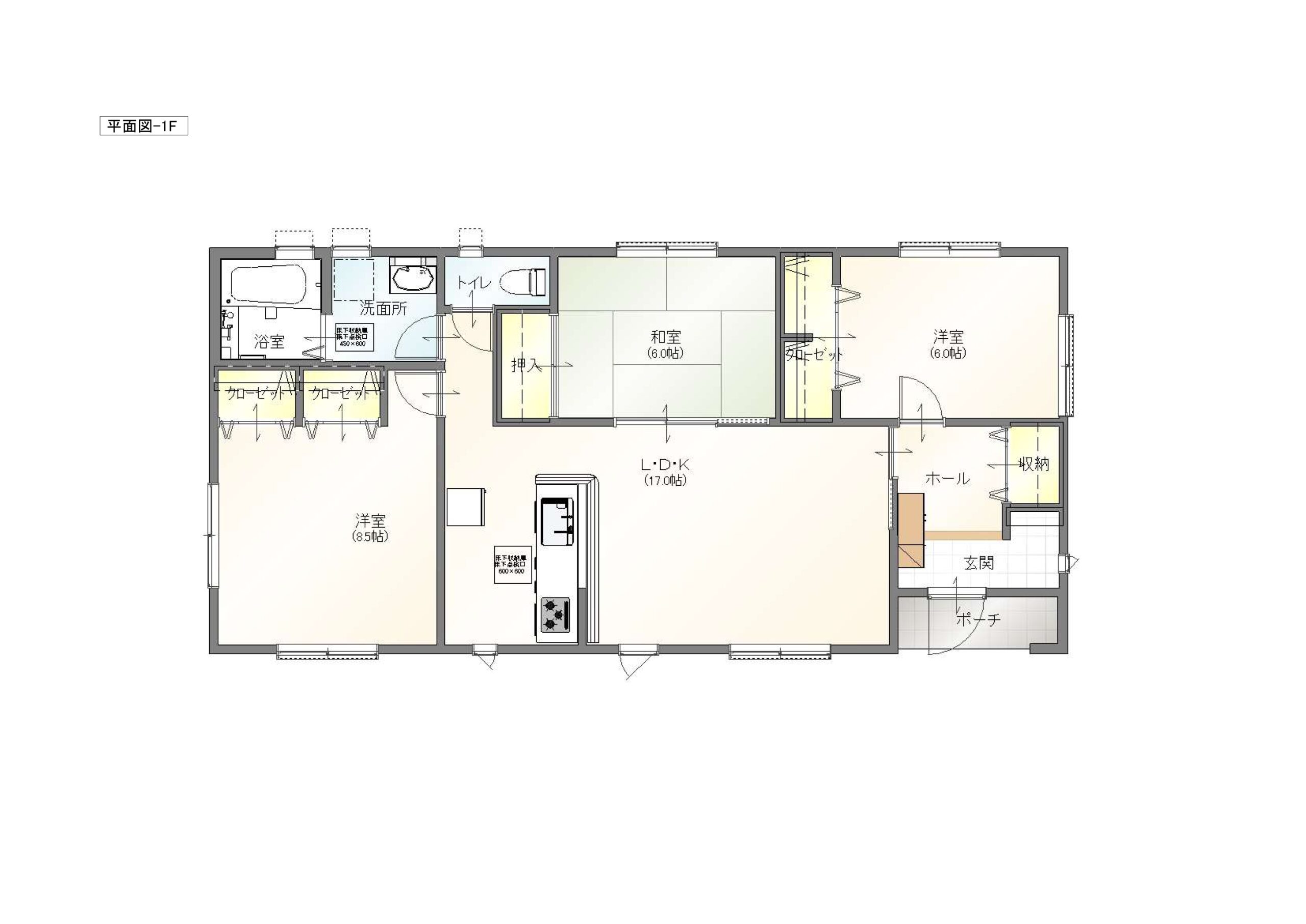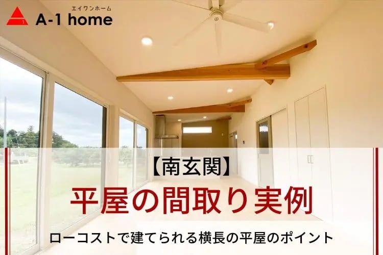 南玄関 平屋の間取り実例ローコストで建てられる横長の平屋のポイント高性能なデザイナー住宅を低価格で建てるならA-1home。