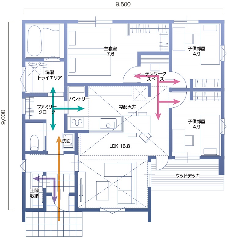 家族の様子が常に伺える家 南・東玄関ハウスプラン100 ダウンロード。