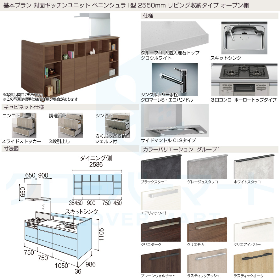 LIXIL リクシル システムキッチン リシェルSIRICHELLE SI対面キッチンユニット ペニンシュラI型 W2700mmリビング収納タイプ オープン棚 基本プラン : クローバーマート - 通販 - Yahoo!ショッピング。