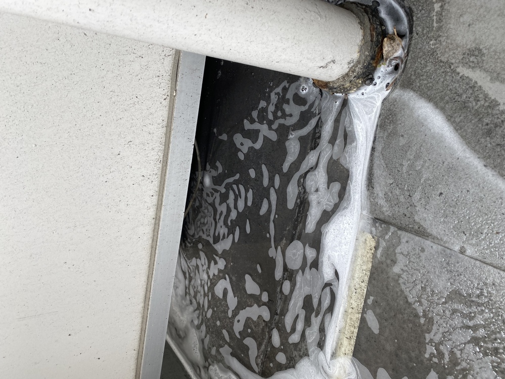 守口市 洗濯機の排水ができずベランダが水浸し 排水管詰まりを解消!大阪の屋根工事なら街の屋根やさん大阪吹田店。