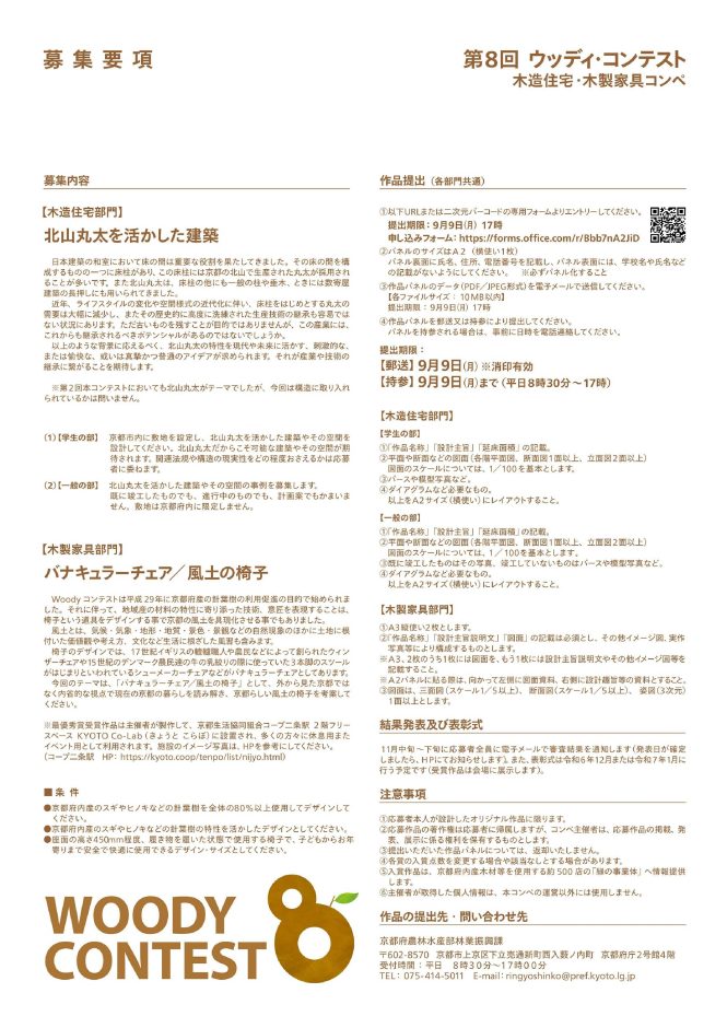 申込締切は9 9まで 京都府内産スギ、ヒノキの特性を活かした木造住宅や木製家具のアイデアを募集『第8回 Woodyコンテスト』 木造住宅・木製家具コンペ 主催:京都府建築系学生・建築好きにおすすめ『建築を次の世代に伝えるための情報サイト』LUCHTA ルフタ。