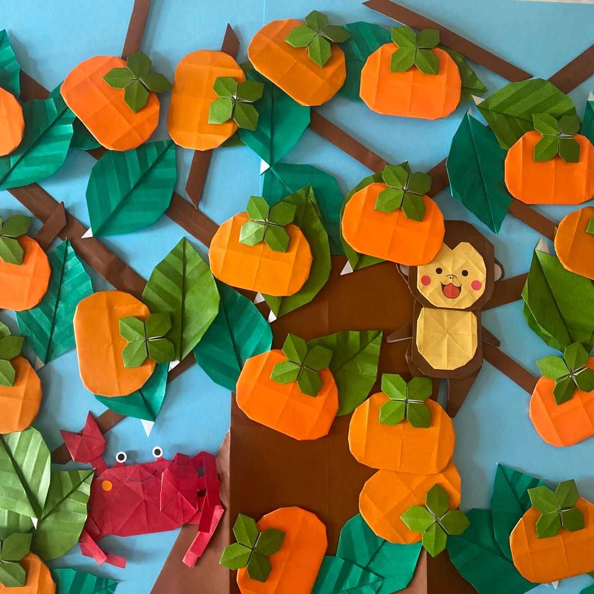 柿の木 折り紙 ハンドメイド 壁飾り 壁面飾り。