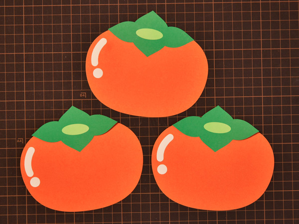 柿」壁面飾りの作り方!無料型紙で簡単! 秋 9月 10月 11月 かき 画用紙 工作 壁面装飾 ペーパークラフト paper craft。
