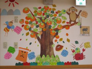 10月の壁面~柿の木栗の木~保育士ワーカ。