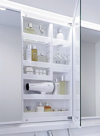 LIXILリフォームいまどきのリフォーム洗面化粧室編キャビネットの隅々まで収納しやすい。