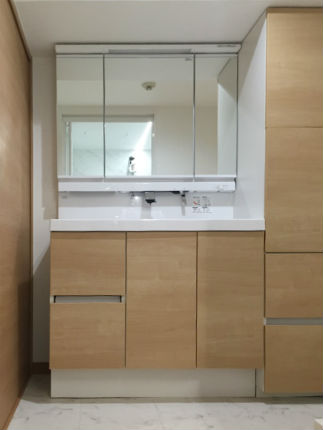 ファミリー向け!大容量収納の洗面台「リクシルのL.C.シリーズ」が使いやすい!K's グッドリフォーム。