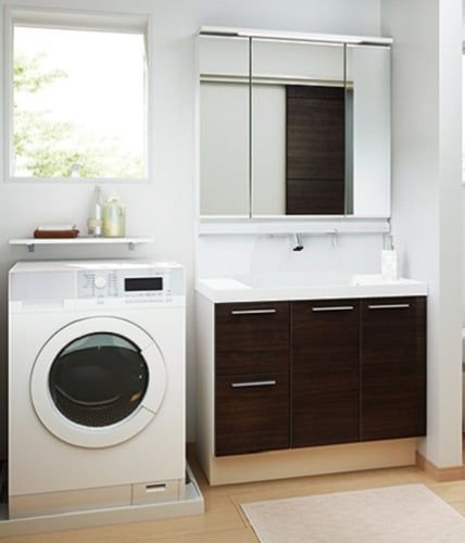 洗濯機上も収納スペースに! LIXIL「L.C エルシィ 」洗面室リフォーム - 川崎市麻生区のリフォーム専門店リフォーム工房アントレ。