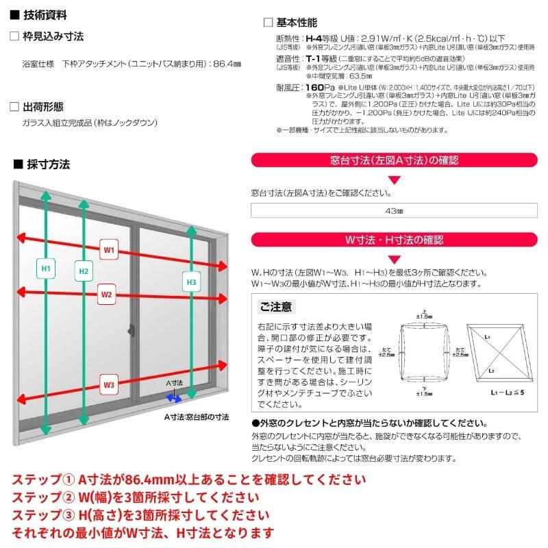 エコ内窓 引き違い窓 浴室仕様 ユニットバス納まり 単板 3mm透明硝子 巾550-1000×高さ300-500mm YKKap LiteU ykk引違い窓 ライトユー Lite U 二重窓 防音。