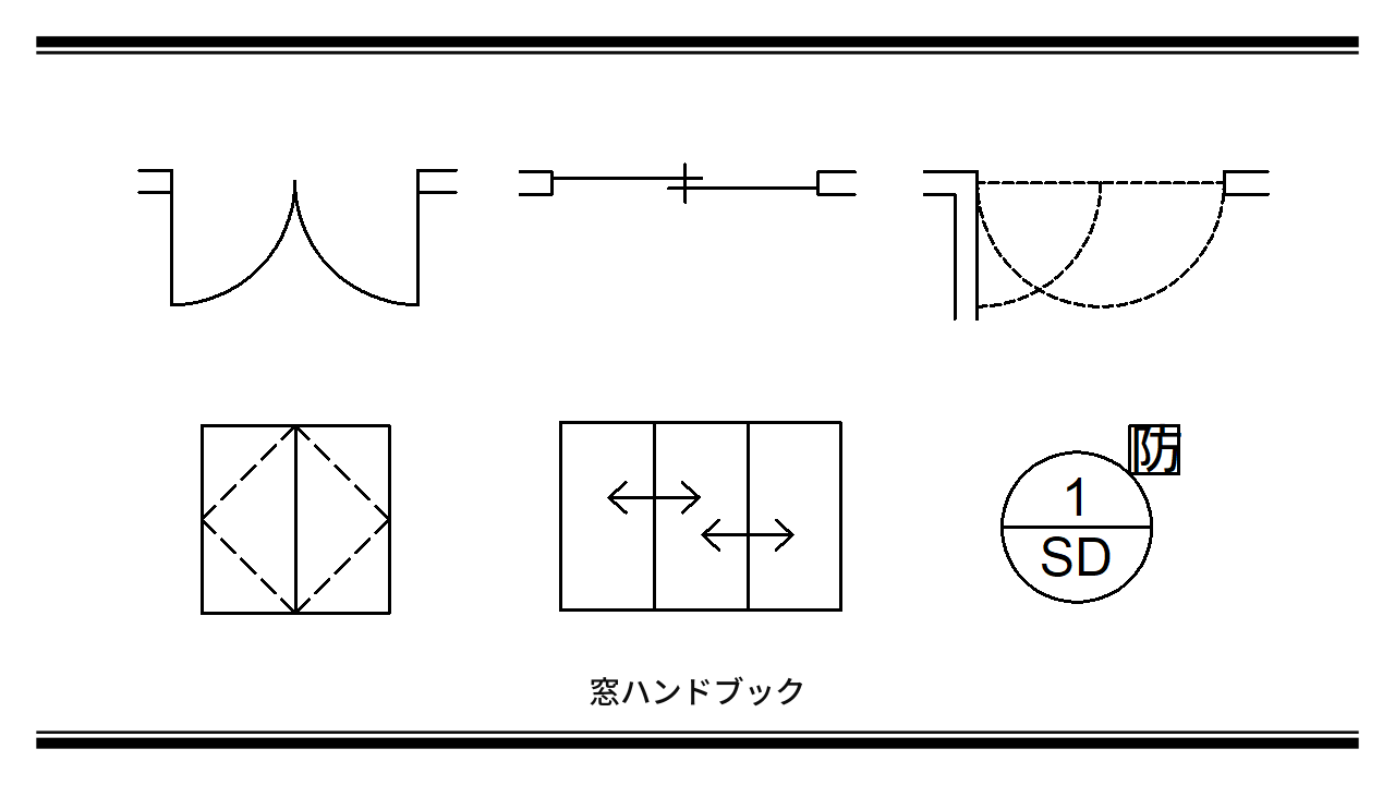 引き違い窓の図面記号・意味CAD図や間取図の凡例解説サイト。