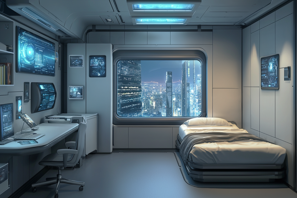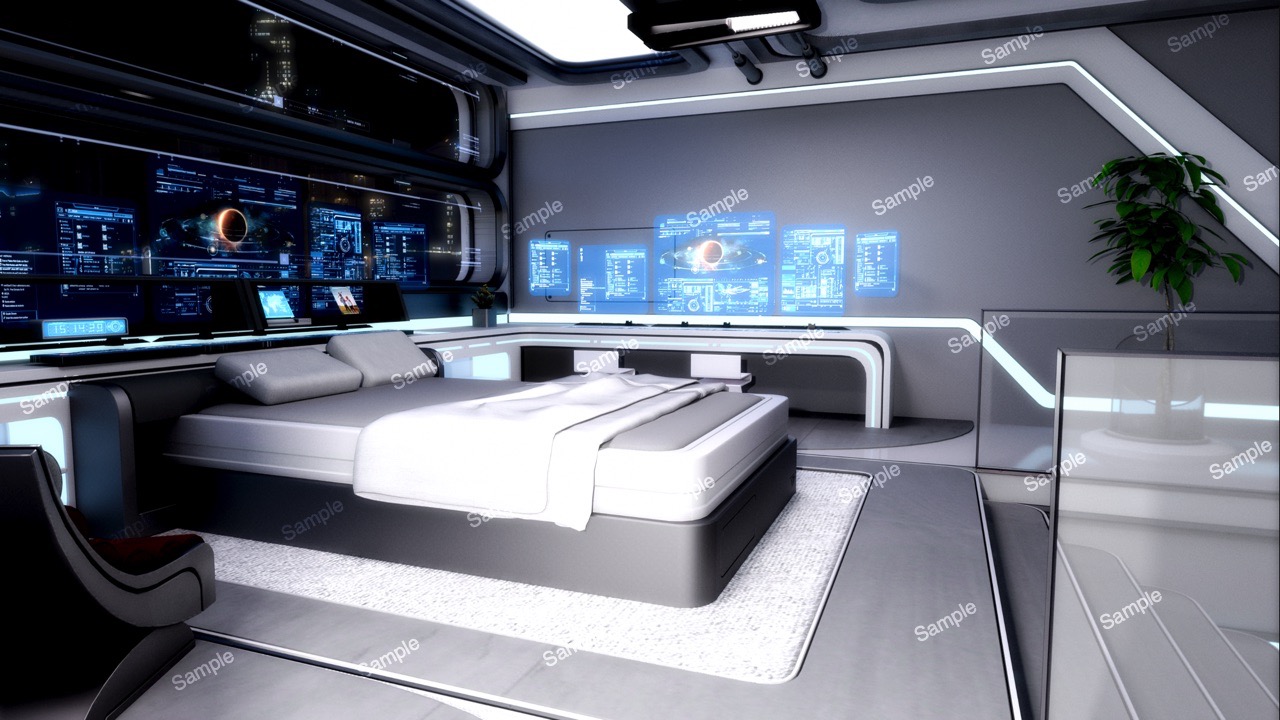近未来イラスト素材 「サイバーパンク・マイルーム2枚セット」を商用利用向け近未来イラストのページに追加しました。 –d-elf。