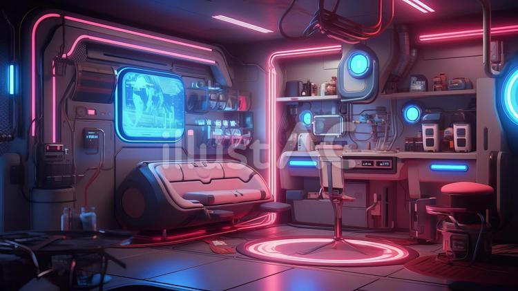 近未来的なオシャレでサイバーなDJマイルーム近未来背景イラスト素材 - UnrealityD'elf - BOOTH。