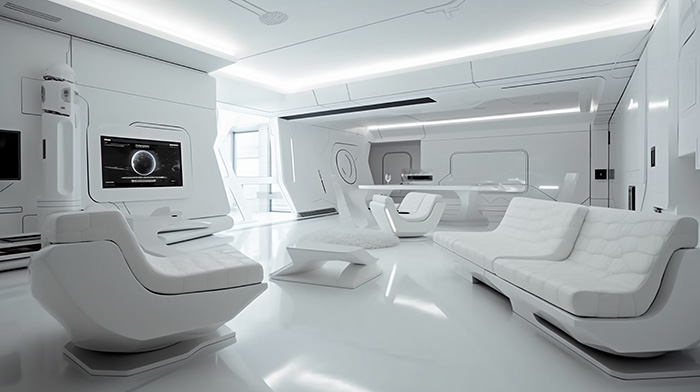 未来感がある白基調のインテリア素材無料イラストダウンロード。