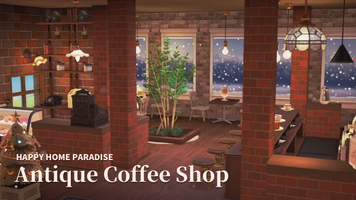 あつ森・ハピパラ カフェのレイアウト~アンティークなコーヒーとケーキのお店~ - マイミーボックス myme box。