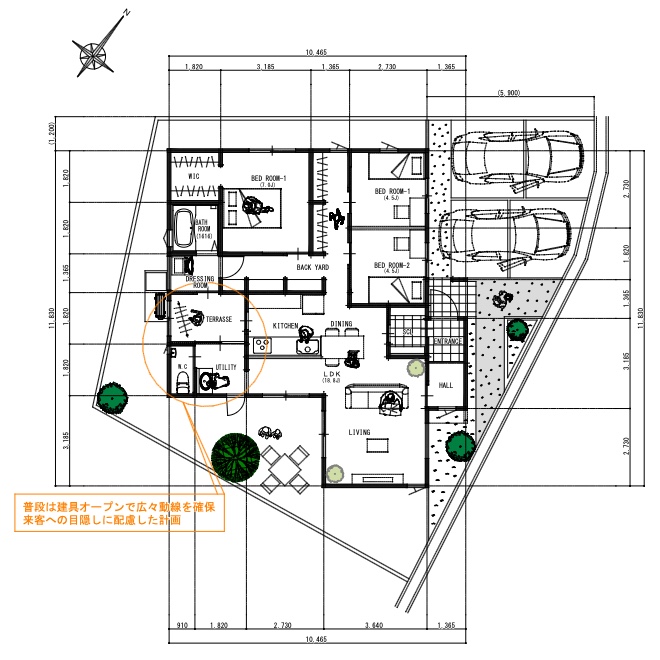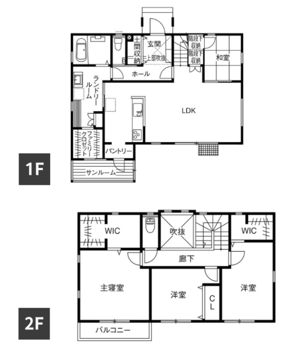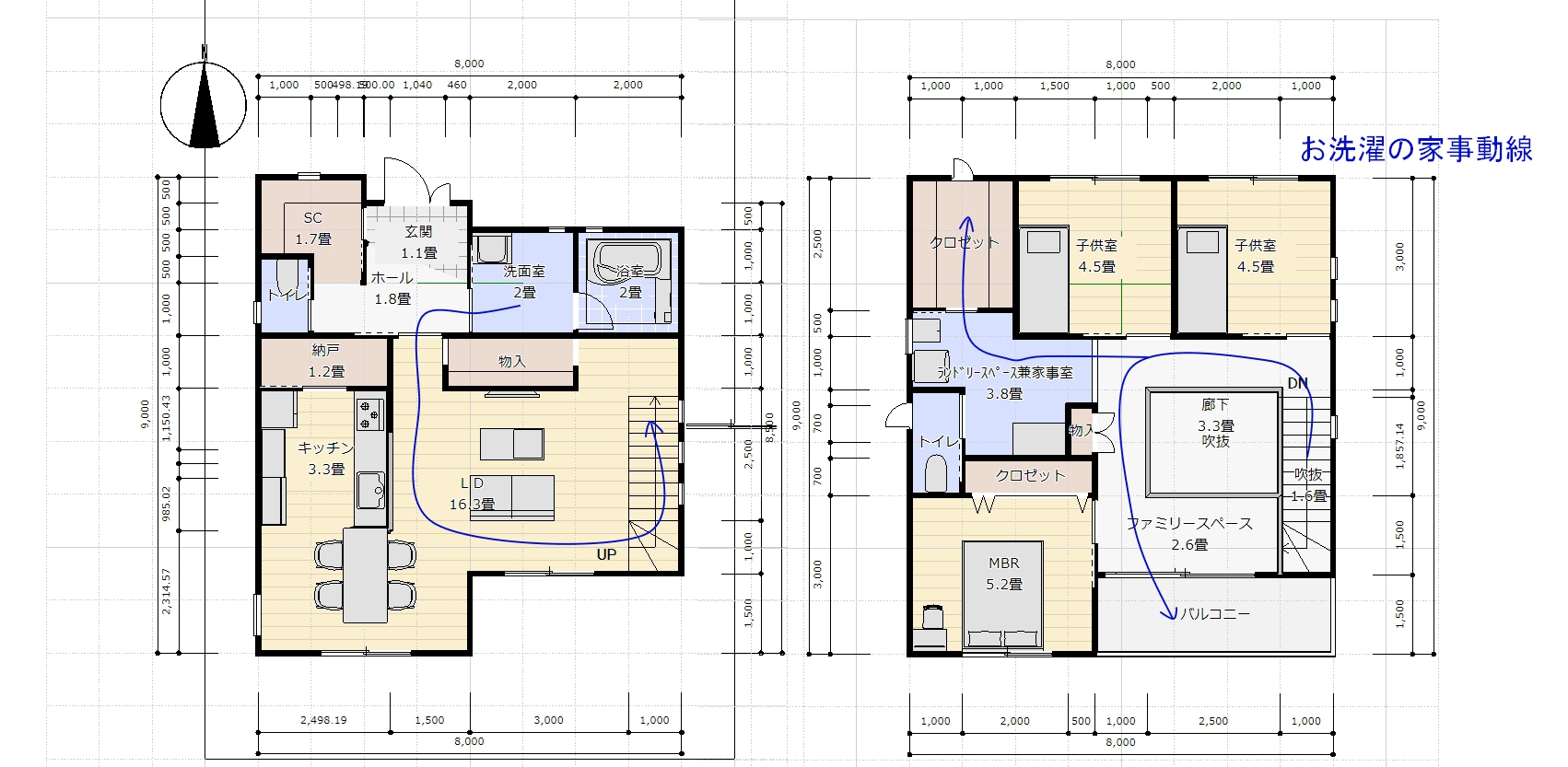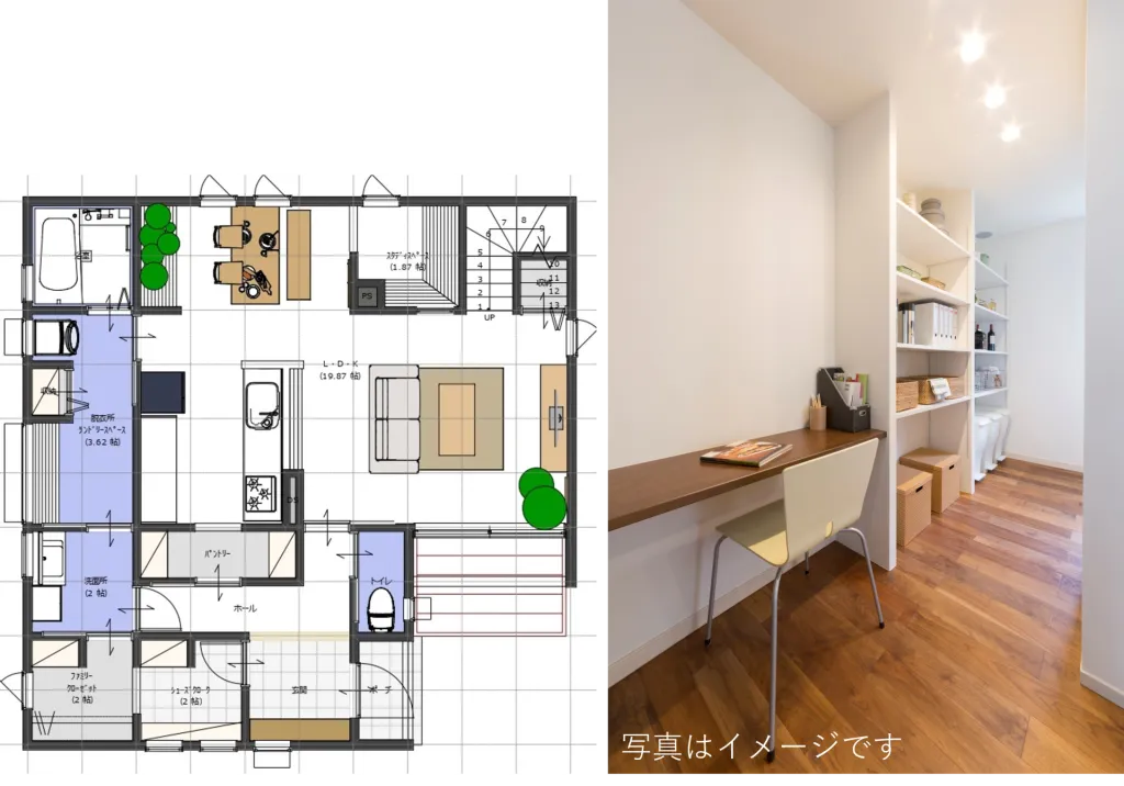 家事動線が良いランドリールームの間取り図と実例平屋・二階建てのアイデアをご紹介 - 鬼丸ハウス注文住宅・戸建て住宅・アパート建築。