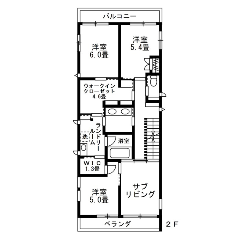 洗面脱衣別で広めのお風呂、2階にランドリールームがある洗濯動線の良い間取り 31坪3LDK2階建 No.106Aみゆう間取り相談室。