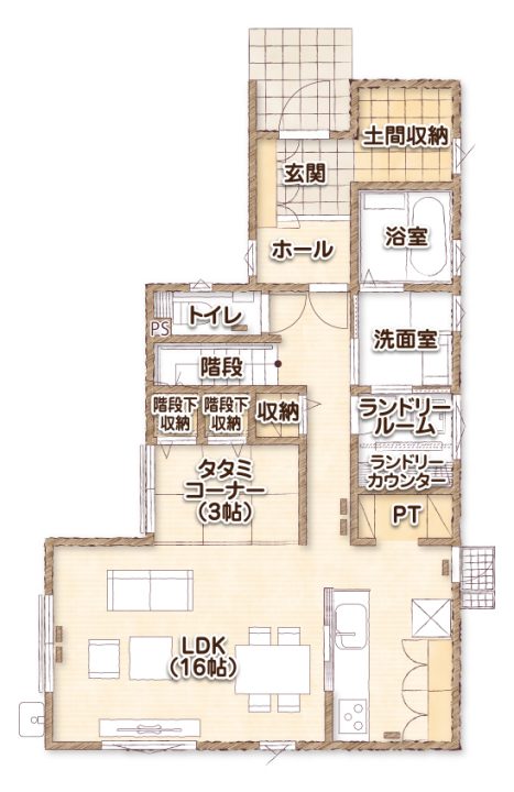 ランドリールームのある家の間取り図。畳コーナー。理想の間取り。