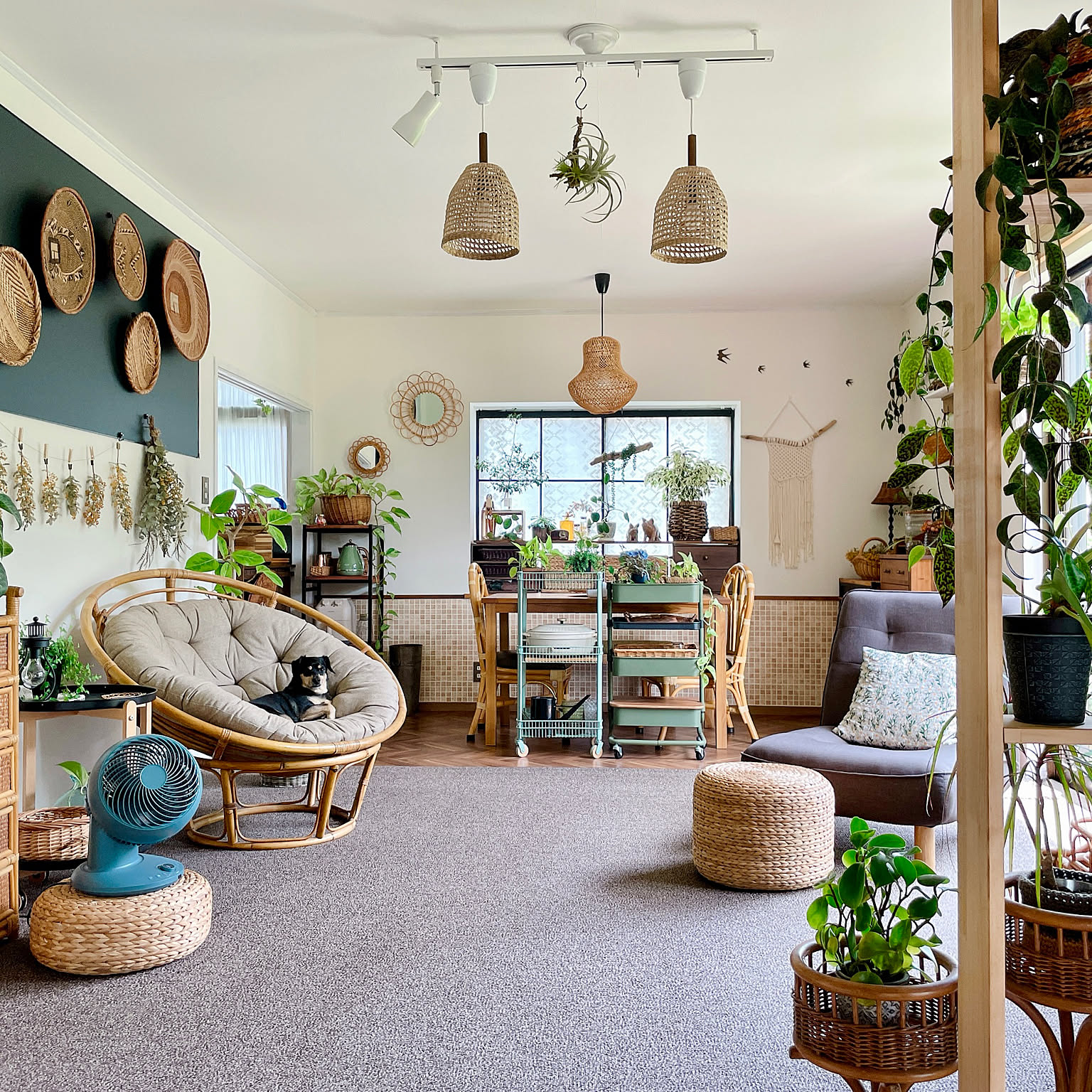 植物に囲まれたくつろぎの空間。ボタニカルインテリアで癒されるお部屋作りを。