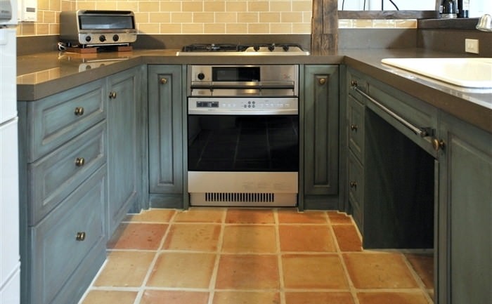 床の仕上げをテラコッタタイルに変更』 キッチン・システムキッチンのリフォーム事例横浜市中区 リフォームO-uccino。