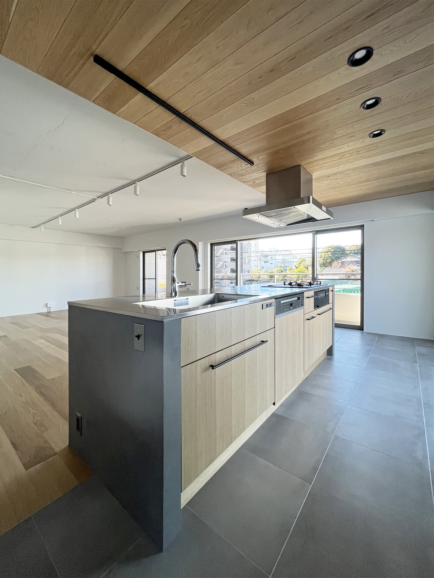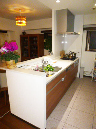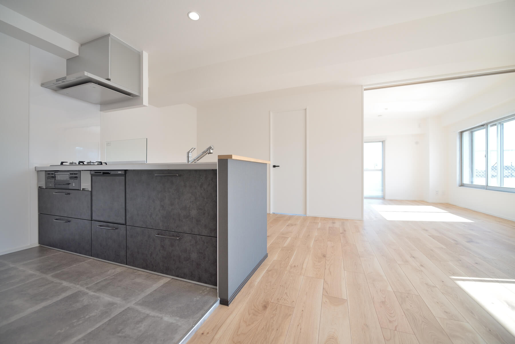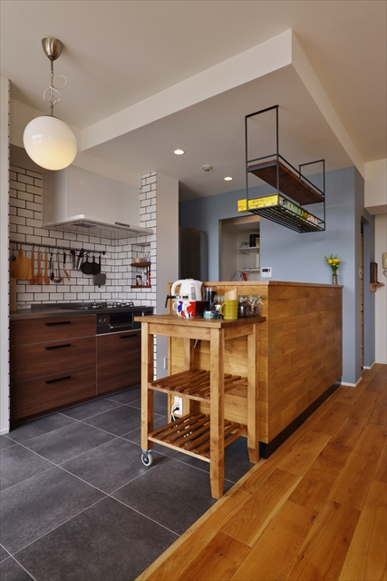 おしゃれで清潔なタイル床のキッチン東京・千葉のリノベーション事例中古マンション・戸建てリノベーション&リフォーム。
