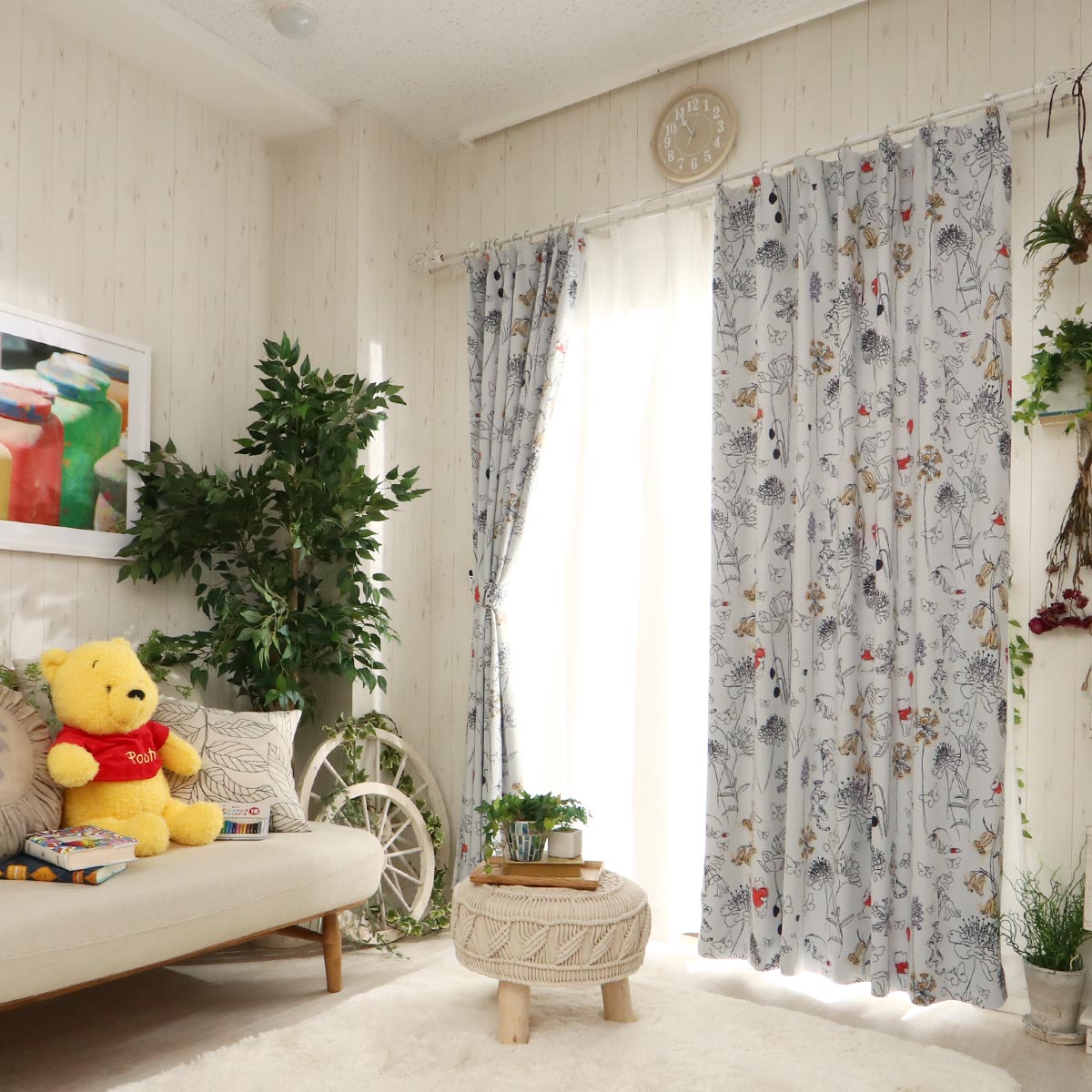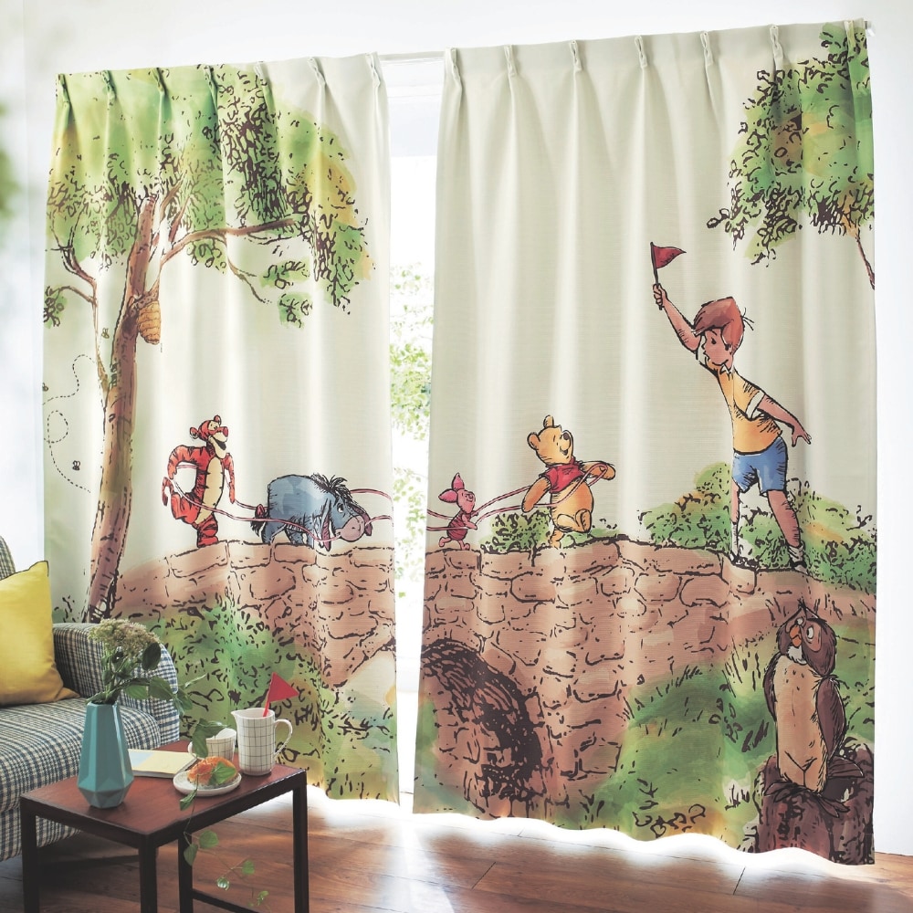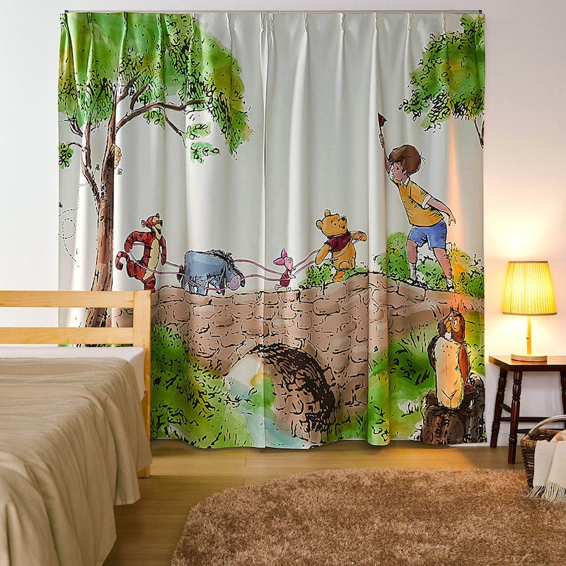 カーテン ファブリック インテリア 遮光 遮熱 一枚絵 デザイン Disney キャラクター かわいい くまのプ。