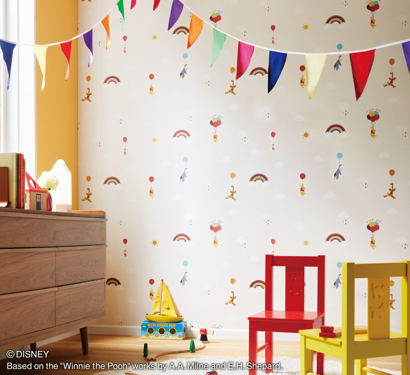プーさんの壁紙で楽しい子供部屋にサンゲツFE76685 FE76146インテリアゴトウ。