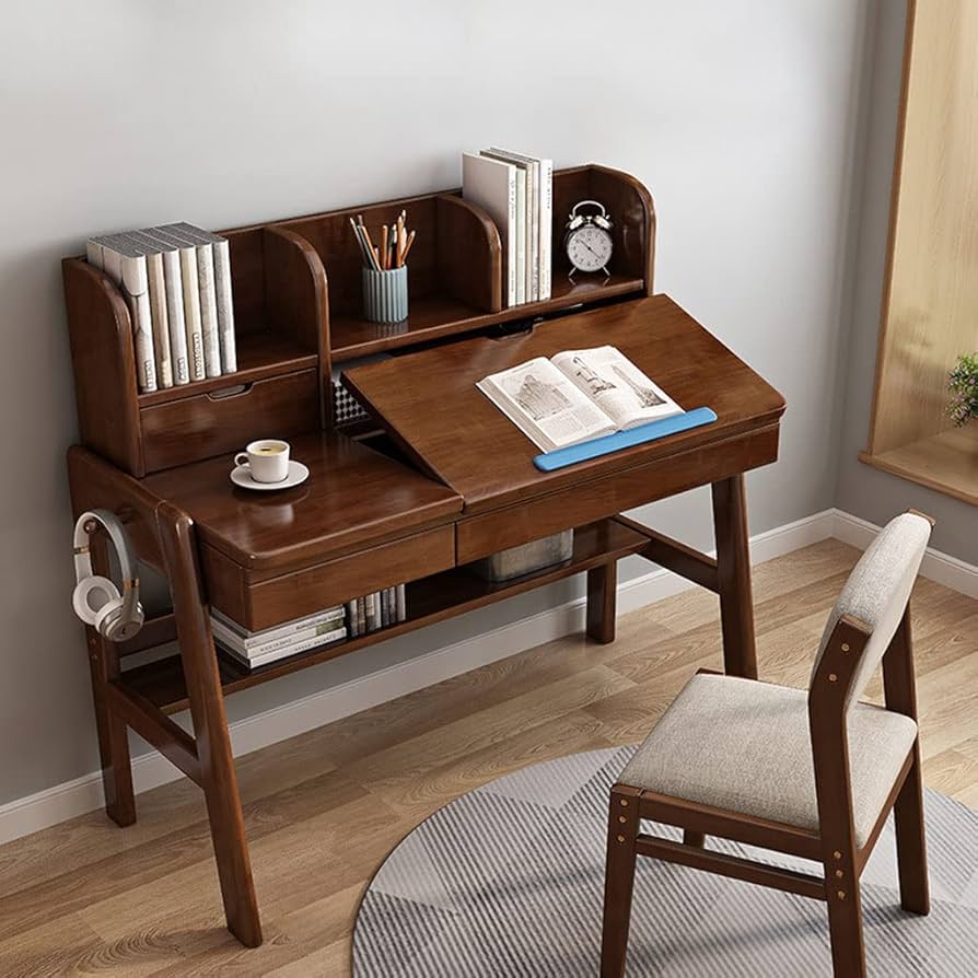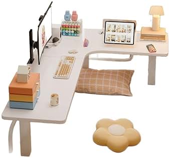 pinaguベッドテーブル,コンピューターデスク 学習机 高さ調整可能 多機能 書き物用デスク 宿舎用の小机 梯形の机椅子 天然竹製 Amazonコンピュータデスク、昇降可能な机と椅子、小学生の学習テーブル、家庭用読書机と2段本棚付きデスク、引き出し、イヤーハンガー。
