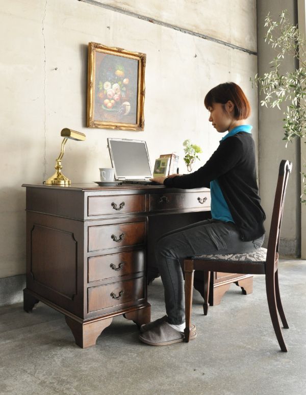 英国スタイルのカッコイイ木製の家具、アンティークのデスク 書机m-423-f アンティーク家具。