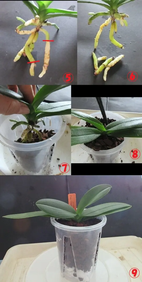 根ぐされした胡蝶蘭をバークで植え替える。