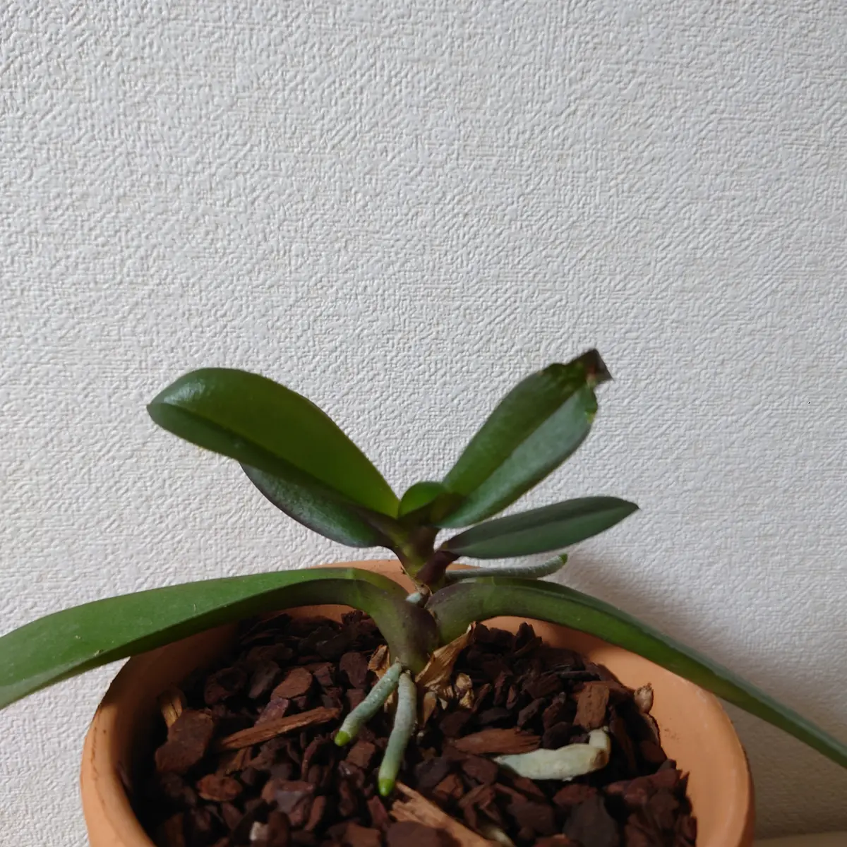 2025.03.16胡蝶蘭E水耕栽培してた胡蝶蘭をまたまた鉢植え🪴にしました。 またまたNEgamieru+ねこチップ+プロトリーフの バークチップ。 昨日の投稿のとおり、ねこチップ S はNEgamieru4号のスリットから溢れてしまうので、鉢底石がわりにバークチップ入れてみまし。