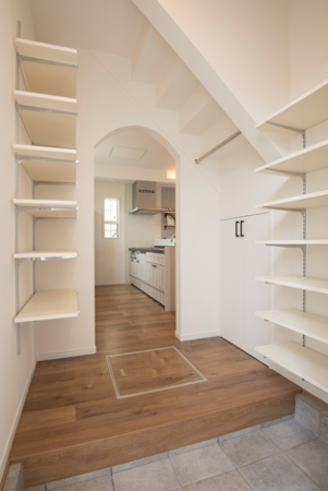 階段下スペースを生かした土間収納土間収納施工例ギャラリーケイアイプレストは新築一戸建・土地販売の不動産会社。ケイアイスター不動産グループ。
