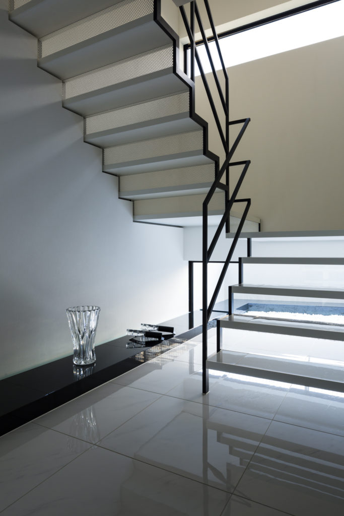 奥行きのある玄関ホールと光こぼれる階段 - テラジマアーキテクツ。