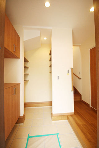 階段の下に玄関の土間収納スペース 玄関ドアに便利なシステムキー : 注文住宅ブログ 大阪京都で注文建築専門の工務店は匠建枚方。
