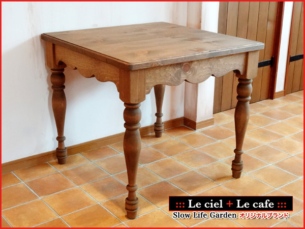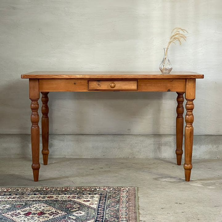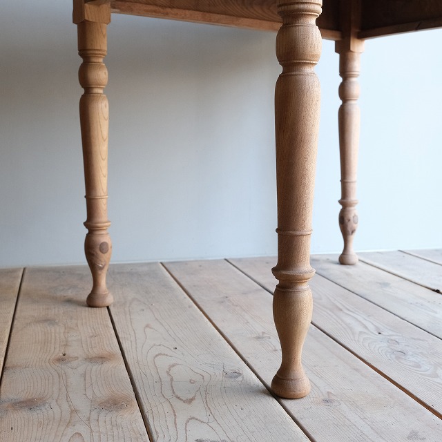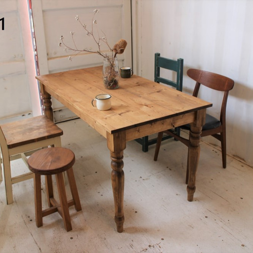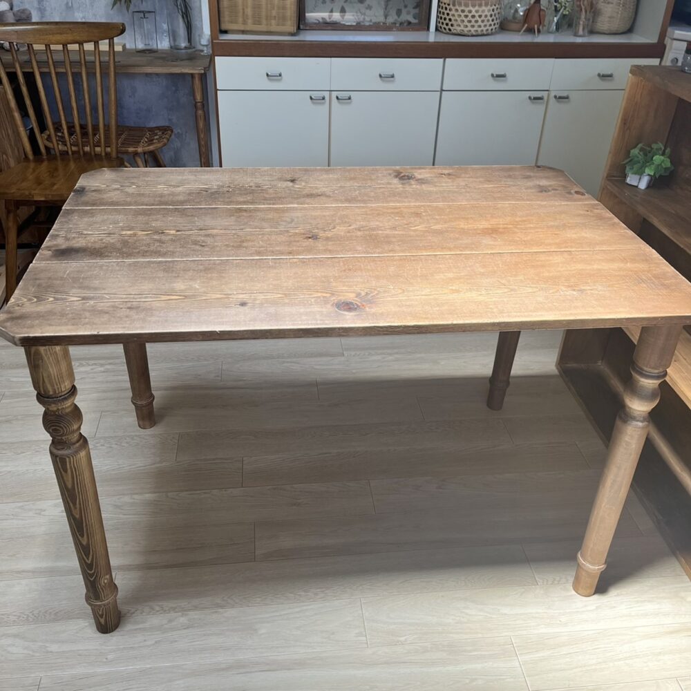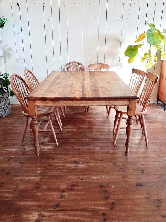 ブロカントレッグダイニングテーブル1800x1200 パイン無垢材 幅広ろくろ脚テーブル アンティーク調。