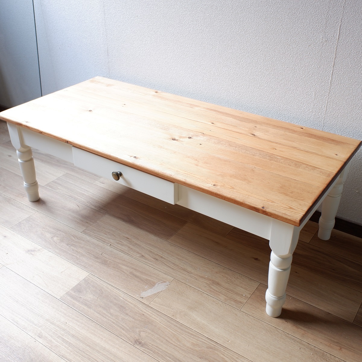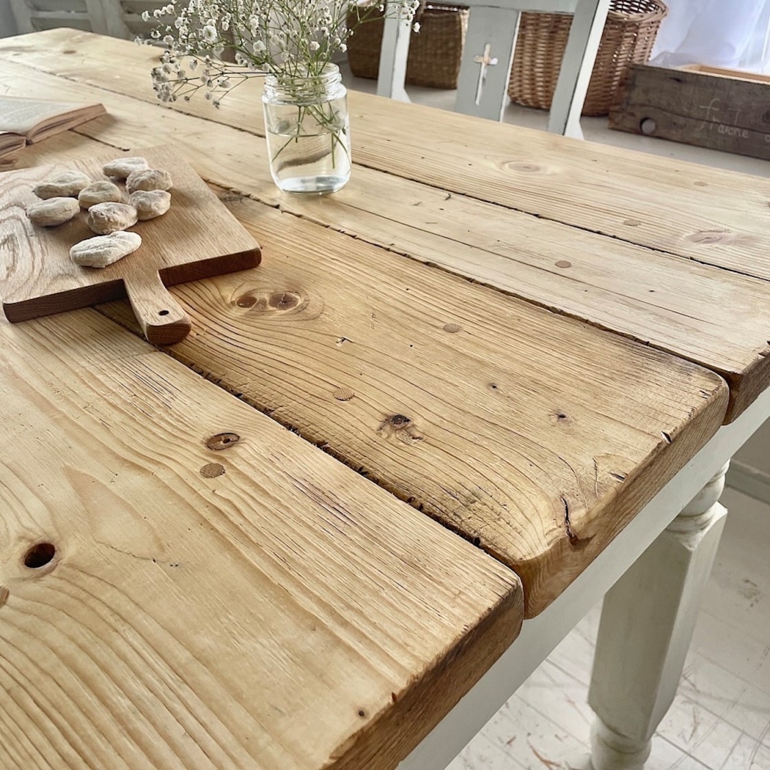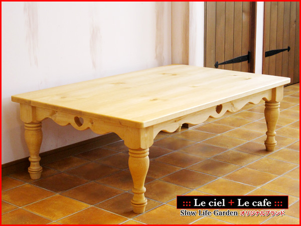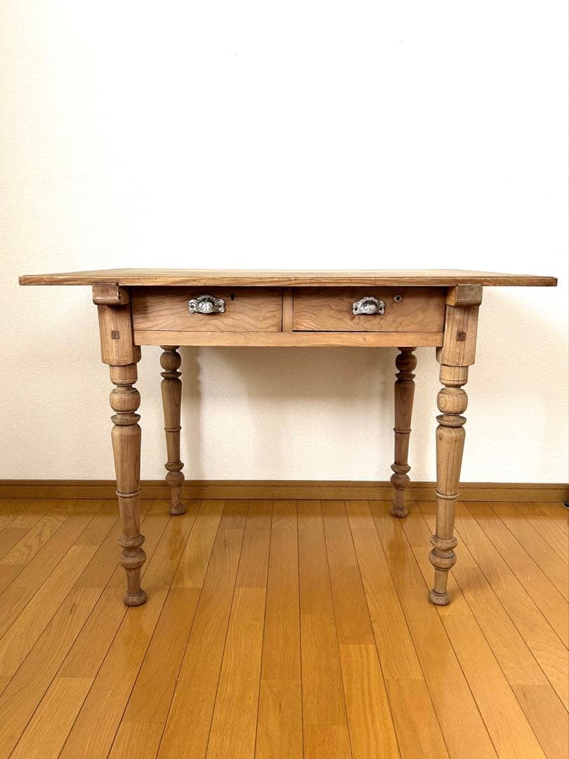 ブロカントレッグダイニングテーブル1800x1200 パイン無垢材 幅広ろくろ脚テーブル アンティーク調。