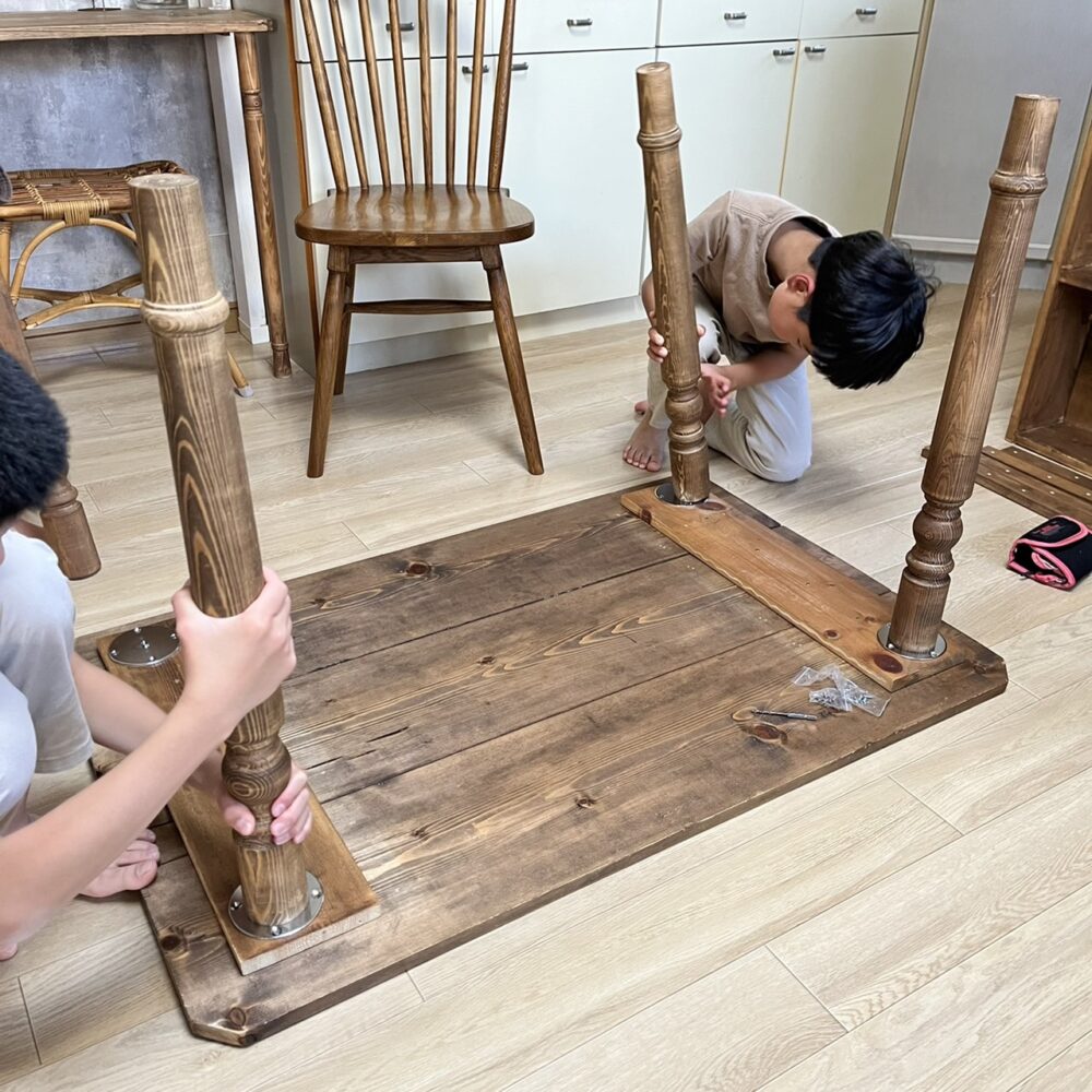 アンティーク風ろくろ脚のダイニングテーブルDIY 子供のぶつかり防止策SNG LABORATORY -暮らしのblog。