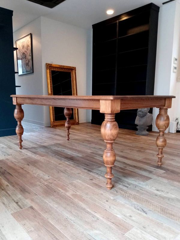 ターンドレッグダイニングテーブル2400 オーク無垢材 大きなろくろ脚のダイニングテーブル アンティーク。