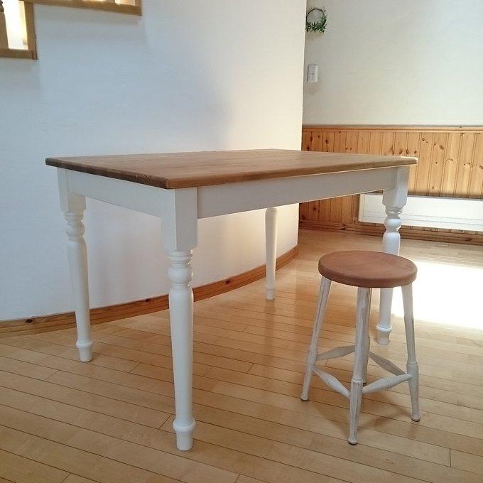 ろくろ脚 テーブル ホワイト フレンチシック 150㎝×80㎝。