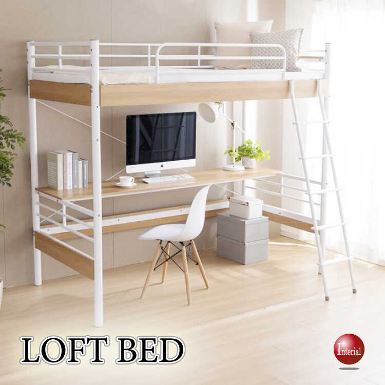 BE-3289 一人暮らしにおすすめ!デスク付きロフトベッド・白。