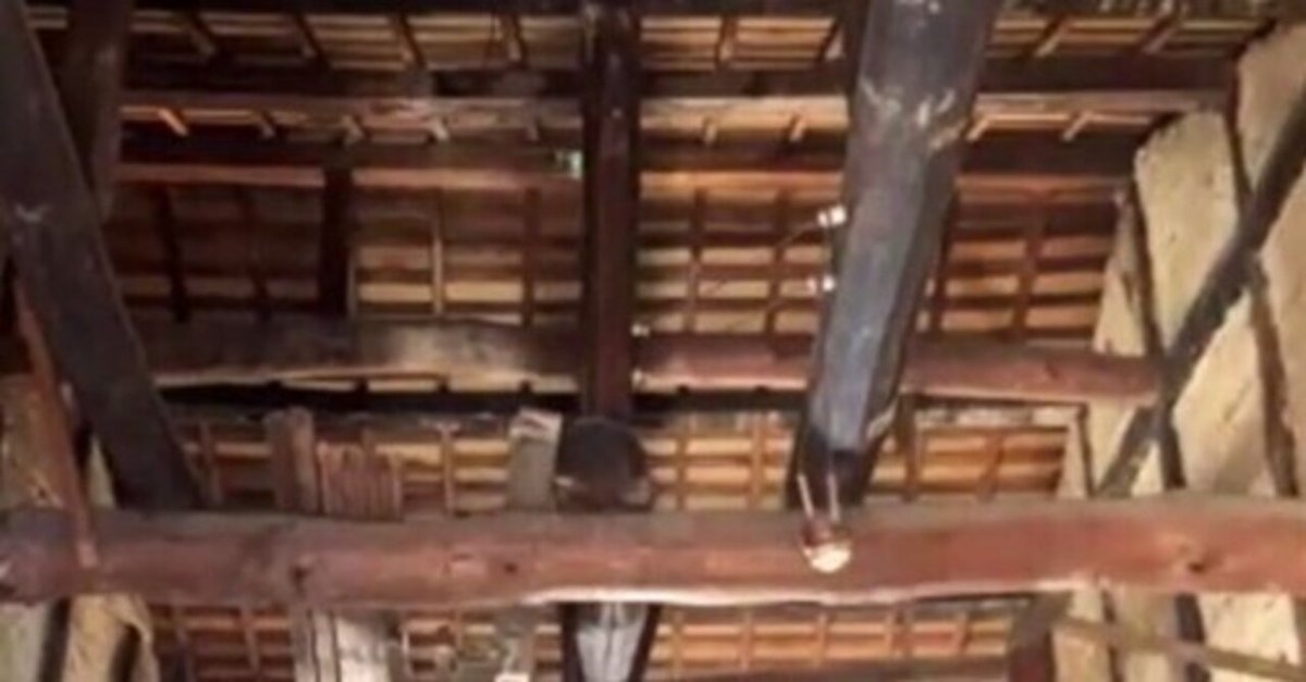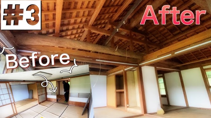 古民家田舎暮らし66 屋根裏部屋の低い天井を壊したらかっこいい伝統的な小屋組みが現れた! 古い板葺き 栩葺き の痕もじっくり見れました屋根裏部屋 - YouTube。