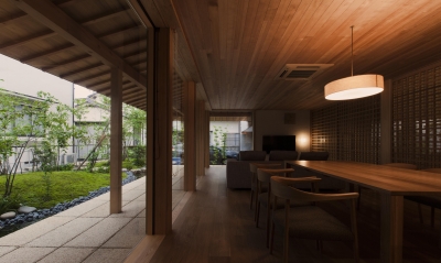 網戸から透けて見える中庭。 豊かに暮らす住まい手の魅力がにじみ出る家 – 建築家ポータルサイト KLASIC クラシック理想の注文住宅を建てよう。建築事例一覧、建築家検索ならおまかせください。