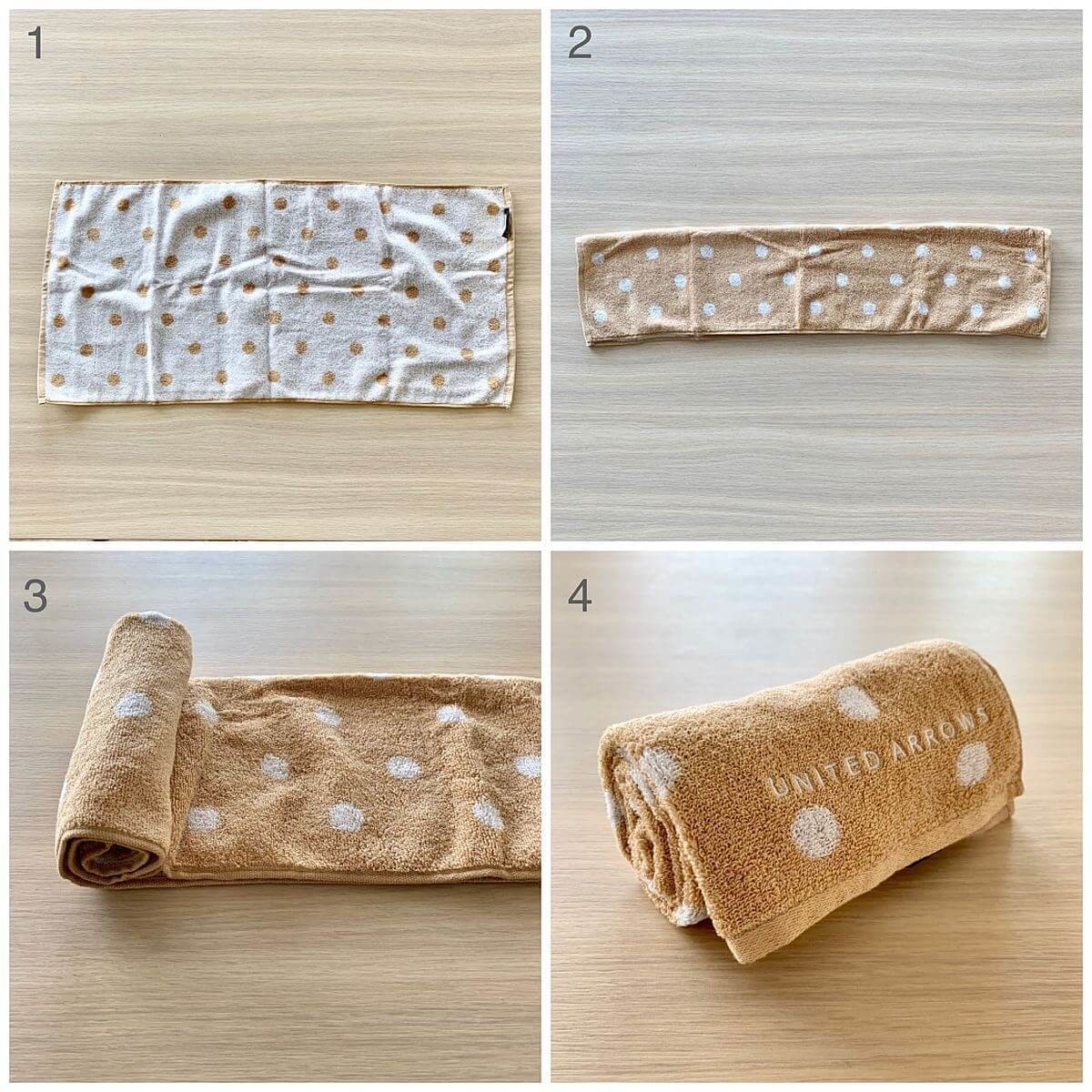 タオルのきれいな畳み方vol.2🧺 クルクルと巻いてしまえば、タオルの端の不揃いも気にならなくきれいに収納できます✓タオルタオル研究所タオル収納豆知識お役立ちお役立ち情報家事時短時短家事時短家事アイデア。