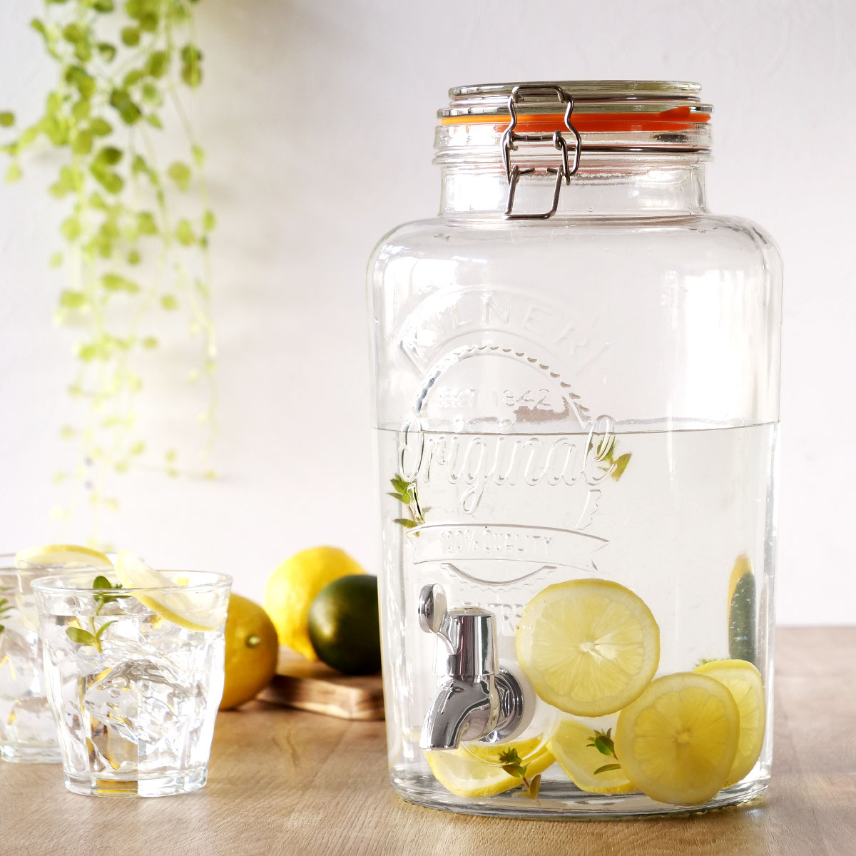 ドリンクサーバー 5L Kilner キルナ―ディスペンサー DISPENSERガラス 蛇口付き ディスペンサー 5リットルドリンクディスペンサー ガラス瓶 ガラス製 瓶 ピッチャー ウォーターサーバー 梅酒 果実酒 おしゃれ 水 ジュース。