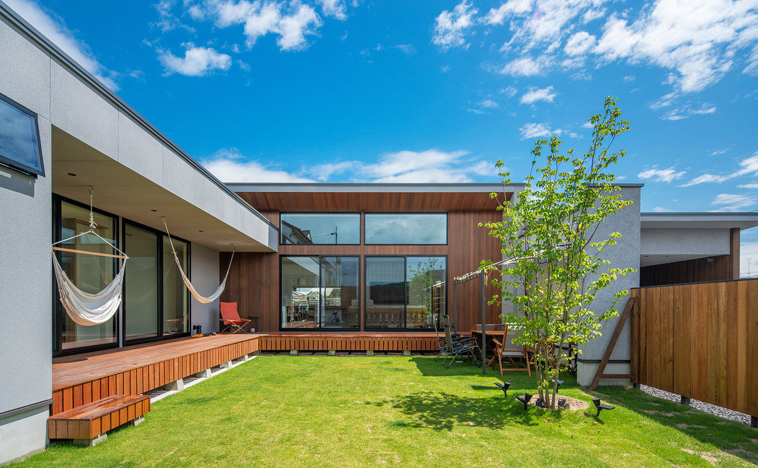 中庭のある平屋』のデッキ+テラス長野市 長野県 で注文住宅・新築一戸建ては自然素材・デザインに強い工務店へ。