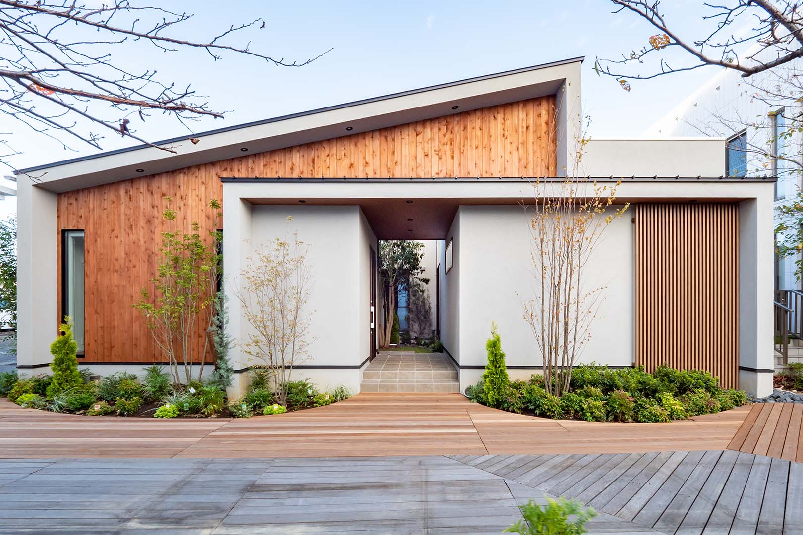 建築実例 街とつながる中庭が気持ちいい、のびやかな平屋木造注文住宅・戸建の住友林業 ハウスメーカー。