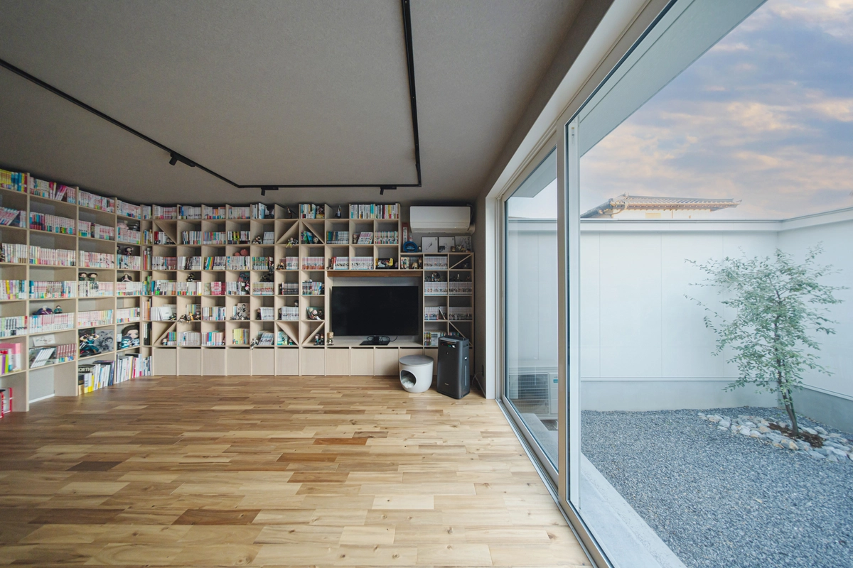 読書好きと猫が憩う中庭のある平屋 注文住宅の施工事例・千葉県旭市 Ⅰ邸 注文住宅なら建築家住宅のR+houseネットワーク。