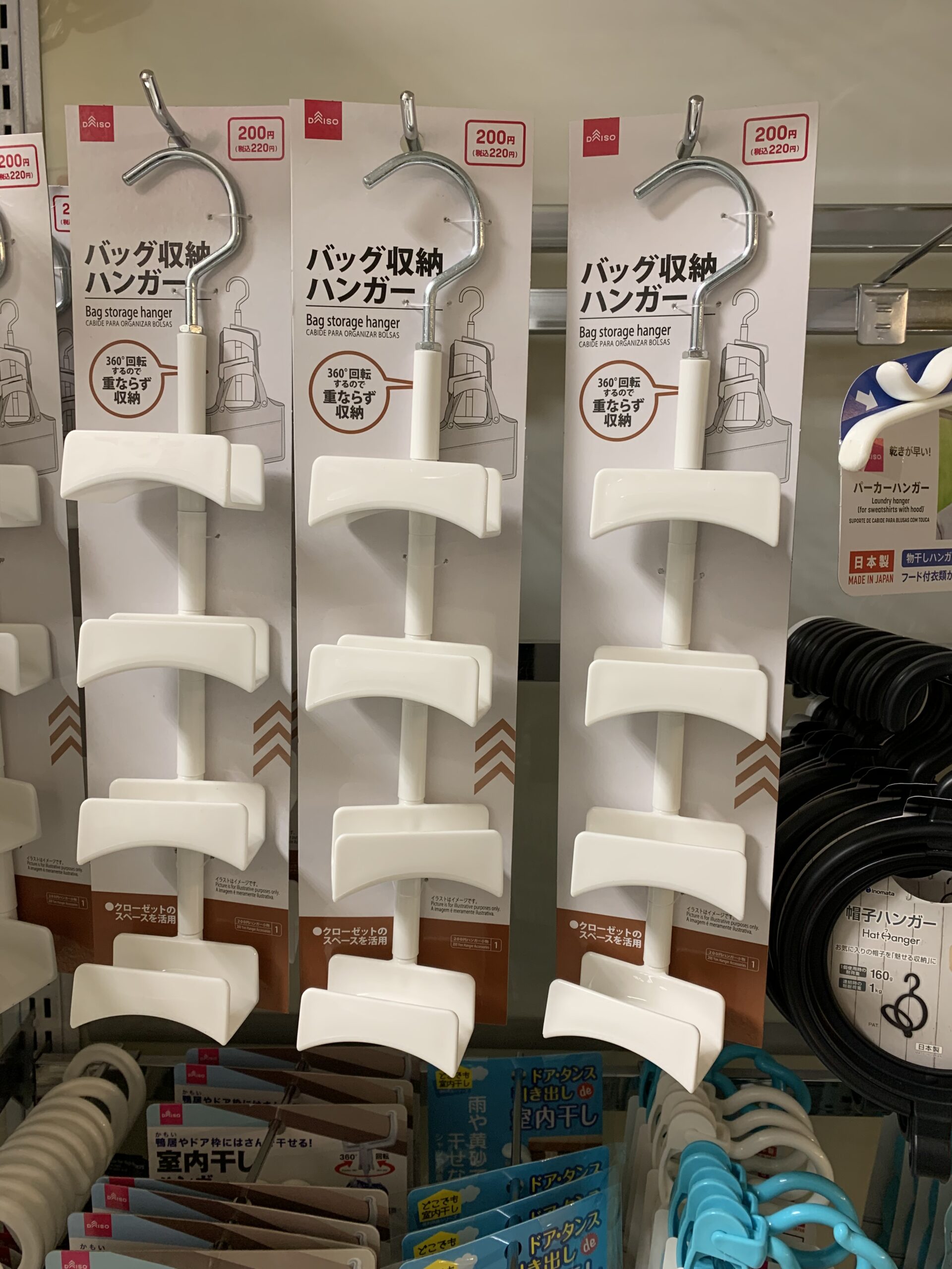 DAISO ダイソー 探険「バッグ収納ハンガー」およげ100円。