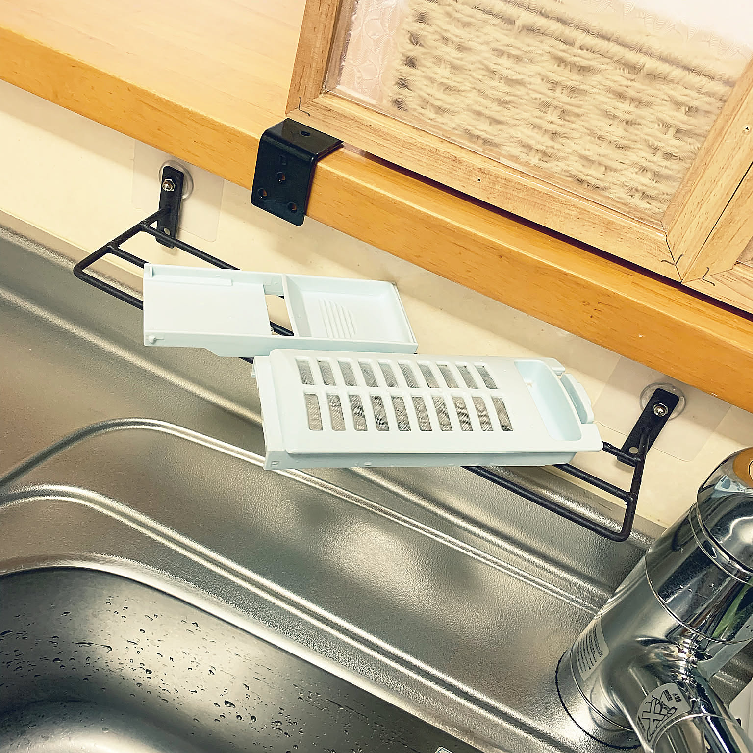 こんばんは! 今回はセリアのアイアンバーを使った収納DIYのご紹介です。これは前の家からやっている収納方法で、引越しにあたって解体したのですが新居でもまた採用しました。 バーの厚みとラップの厚みがピッタリなんですね〜。短いラップなんかが奥までいっちゃう時。