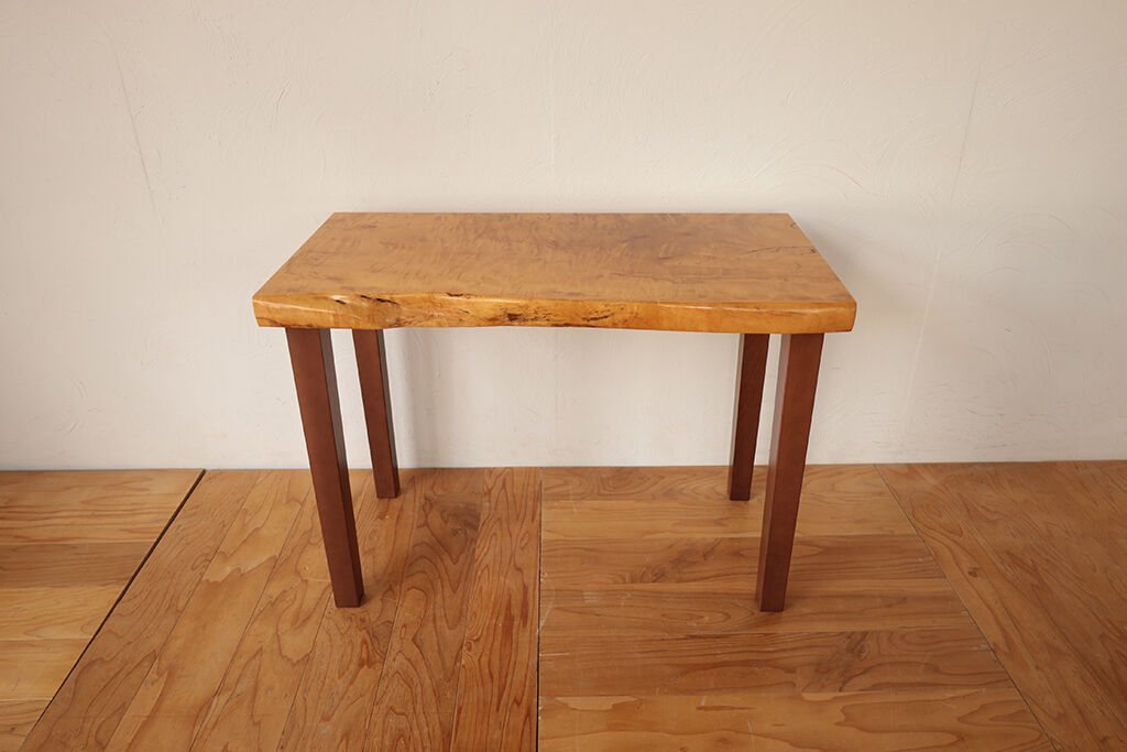 不用になったオーク無垢材天板から作ったデスク リメイク家具 再生家具 リバイブモブラープロジェクト 花台 小さい 木。