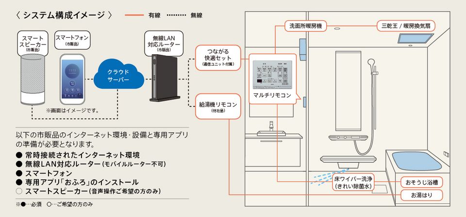 システムバスルーム向け「つながる快適セット」浴室・お風呂・ユニットバス商品情報TOTO株式会社。
