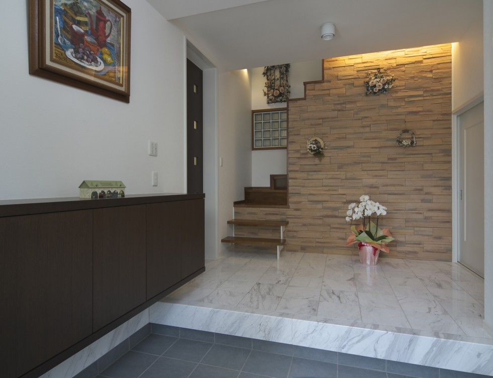 上質で暖かみのある玄関ホール施工事例RIVIERA デザインタイル・天然石のリビエラ株式会社。